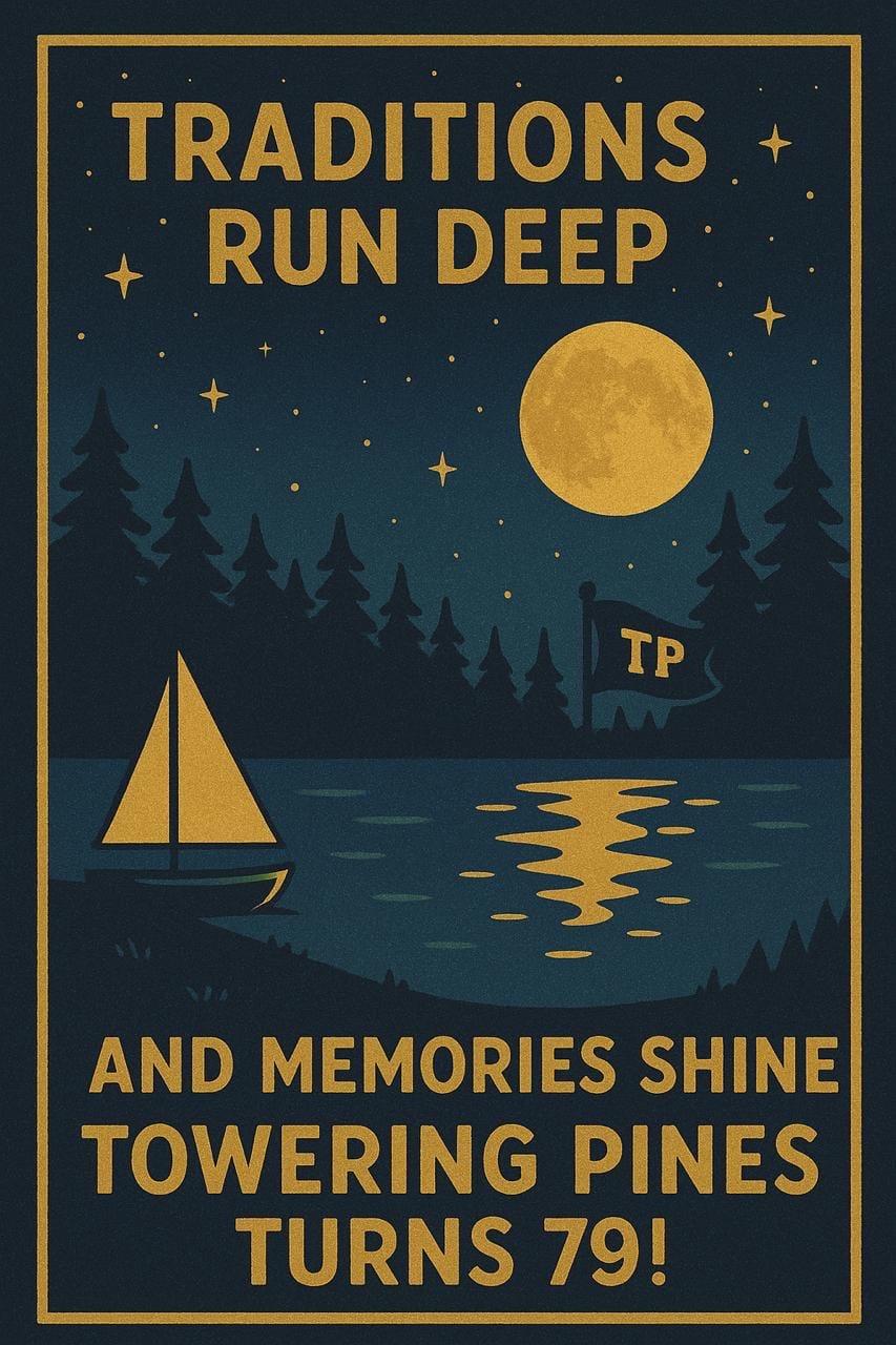 From all of us at camp, thank you for helping us to continue these unique and impactful traditions by coming back each summer! We also thank you for sharing your camp stories with others and inviting them to come to Towering Pines and experience all that makes it unique. We are grateful for our time building fond memories amidst the Towering Pines in our Northwoods home.