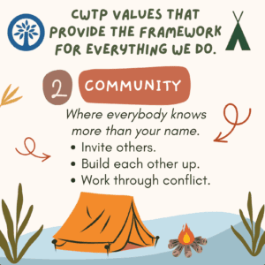 Will mentioned that ” . . . empathy fosters an amazing community of people who care for and help each other.” His thoughts enforce the reason for another one of our core values which is Community. At TP our camp community is encouraged to invite others into their conversations, games and activities so that no feels left out or isolated. We build each other up by supporting one another through great challenges and amazing accomplishments. In addition, our goal is to teach and guide campers and staff to work through conflict by empathizing what the other person is going through and respecting their perspective although it may be much different from our own.